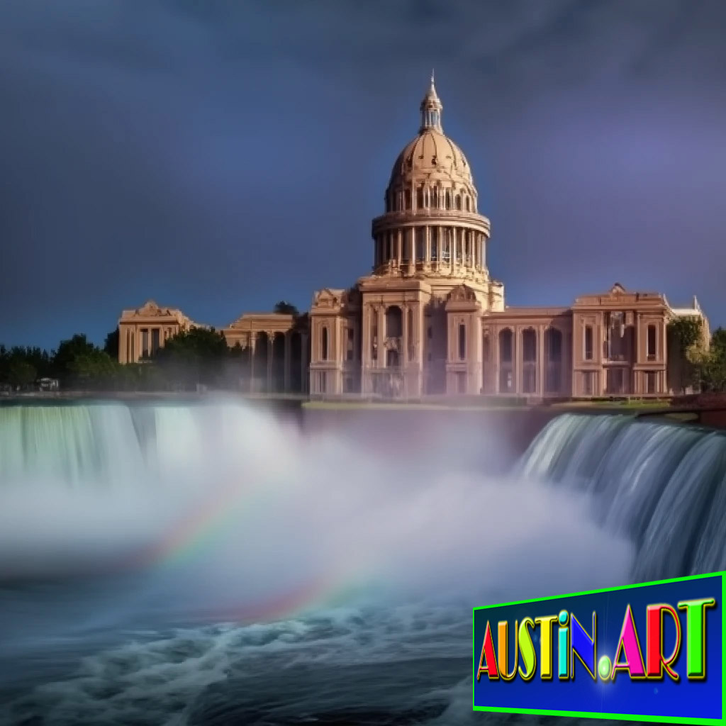 1st Collection: “Austin Capitol Building World Tour”: Witness the grandeur of the Austin Capitol Building as it traverses iconic global landscapes. These Austin art paintings offer a whimsical and patriotic journey, celebrated as Famous Austin art in the making. "Austin Capitol World Tour!", "Austin Capitol Building Voyage…", "Austin Capitol Building Travels The World" are all part of this imaginative series.